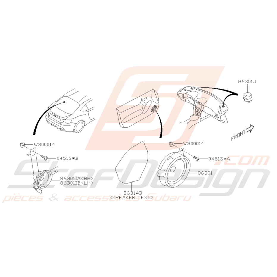 Schéma de l'ensemble des pièces d'Haut-Parleur pour Subaru BRZ de 2013 à 2019.
