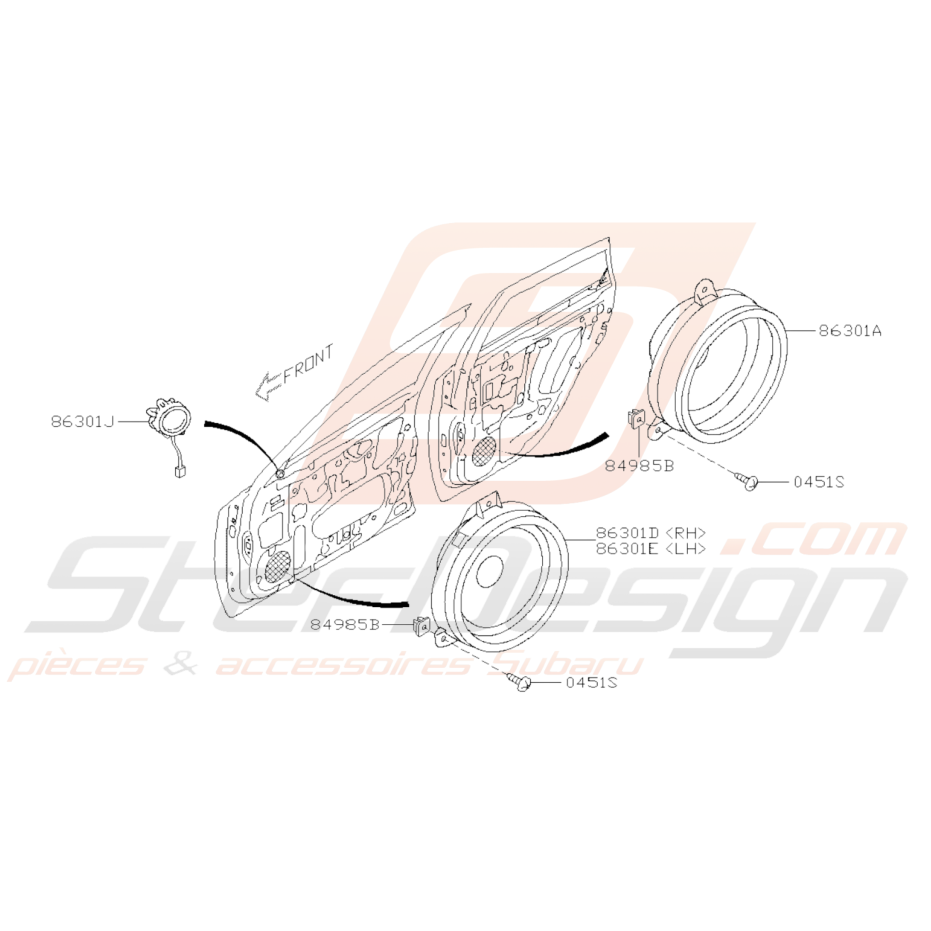 Schéma de l'ensemble des pièces de Haut Parleur pour Subaru WRX STI de 2008 à 2014.