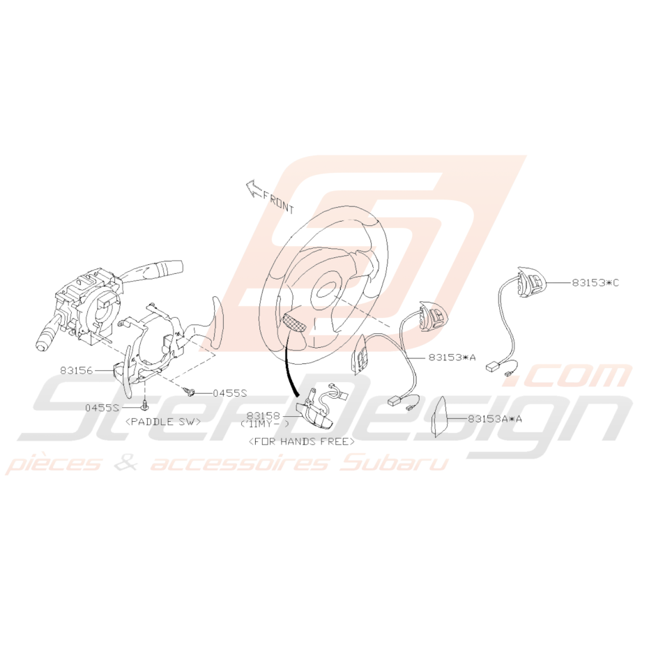 Schéma de l'ensemble des pièces d'Interrupteurs de Volant pour Subaru STI de 2008 à 2014.