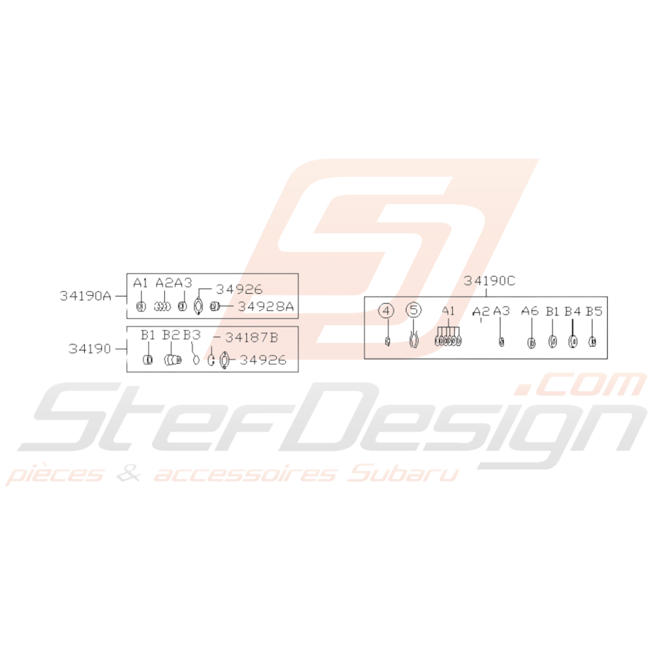 Schéma de l'ensemble du Kit de réparation du boitier de crémaillère de direction Origine Subaru GT 98-00