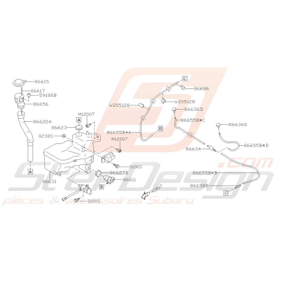 Schéma de l'ensemble des pièces de Lave-Glace Avant pour Subaru BRZ de 2013 à 2019.