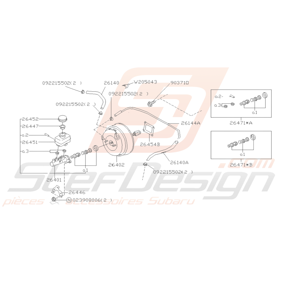 Schéma de l'ensemble des pièces Maitre Cylindre Frein pour Subaru FORESTER de 1997 à 2002.