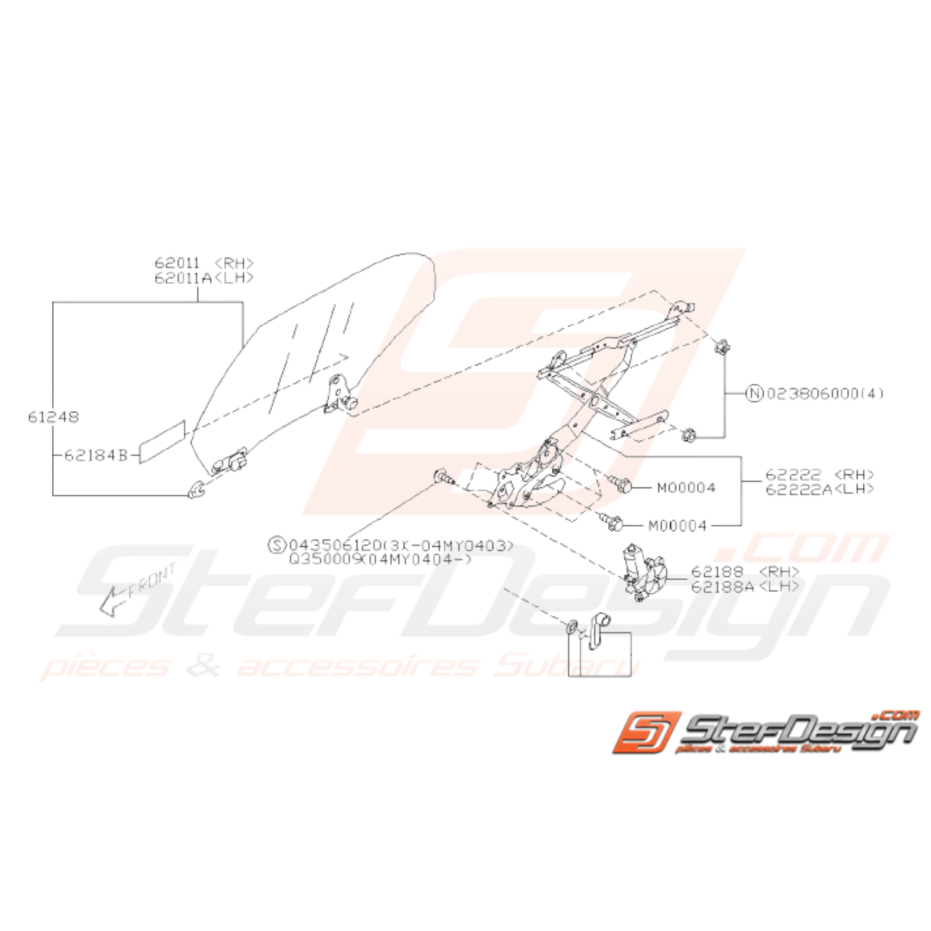 Schéma de l'ensemble des pièces de Mécanisme de Vitre Arrière pour Subaru WRX STI de 2001 à 2007.