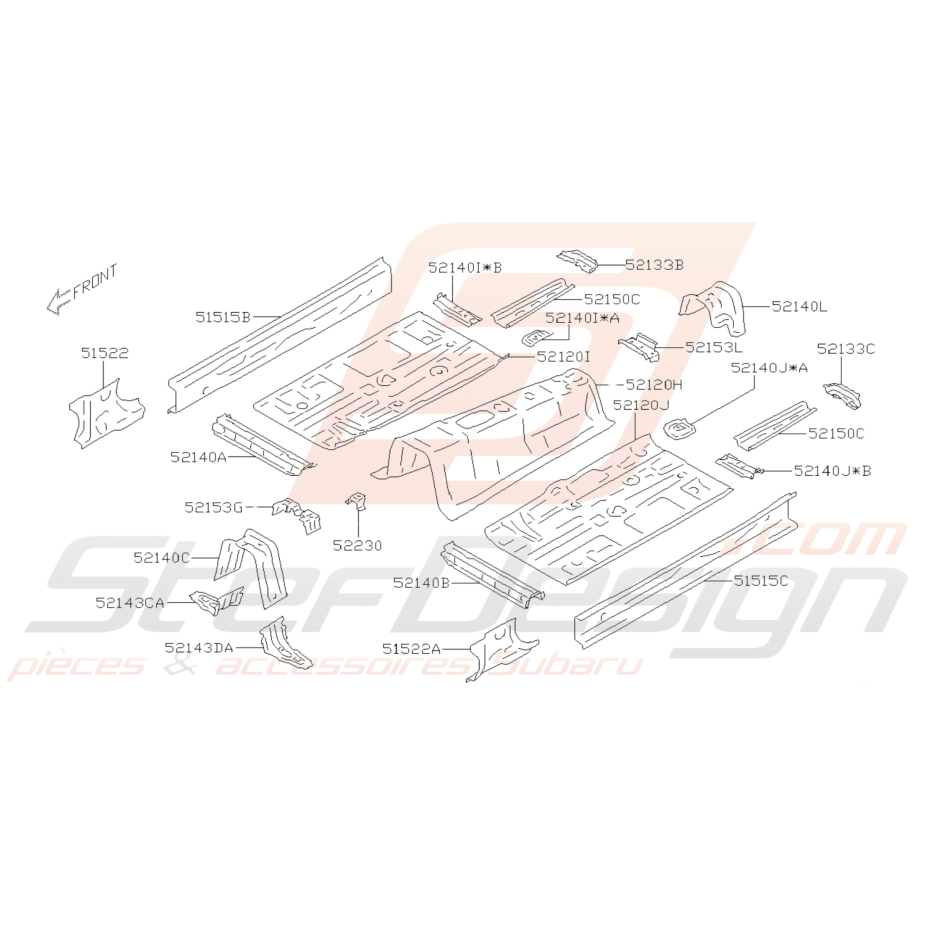 Schéma de l'ensemble des pièces de Panneau de Sol Avant pour Subaru BRZ de 2013 à 2019.
