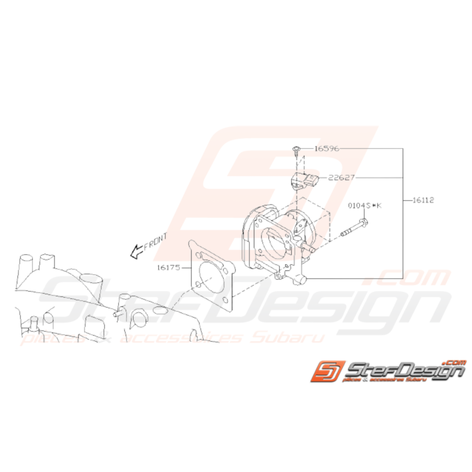 Schéma de l'ensemble des pièces de Papillon d’Admission pour Subaru WRX STI 2006 - 2007.