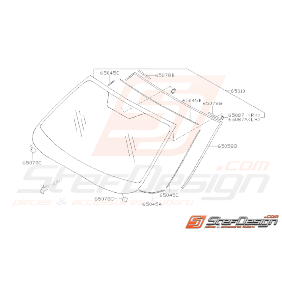 Schéma de l'ensemble des pièces de Pare Brise Avant pour Subaru WRX STI de 2008 à 2014.