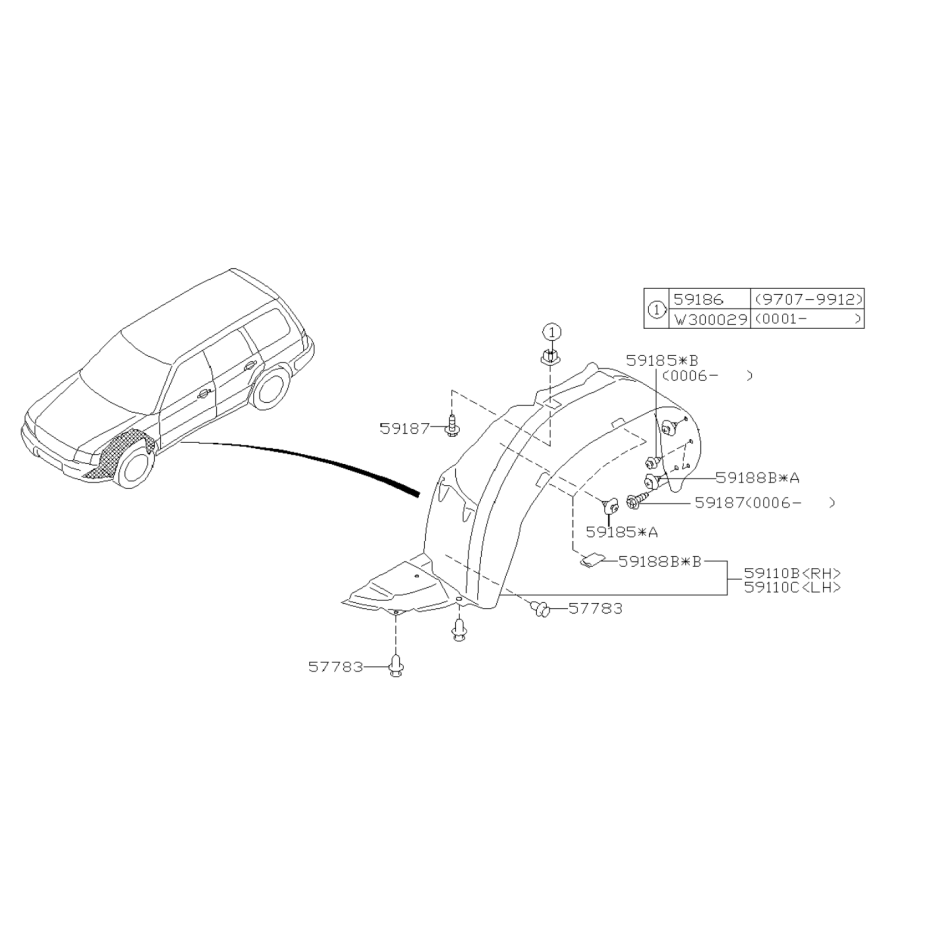 Schéma Passage de Roue Avant Origine Subaru Forester Turbo 97-02