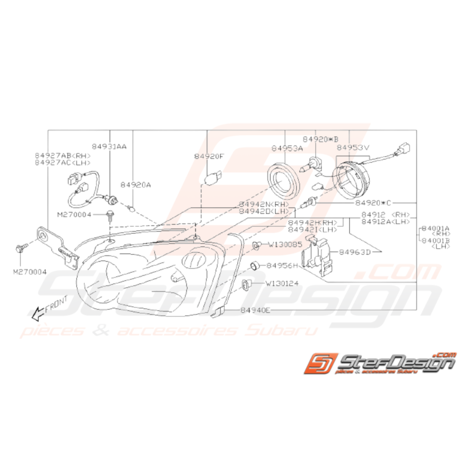 Schéma de l'ensemble des pièces de Phare pour Subaru WRX STI de 2003 à 2005.