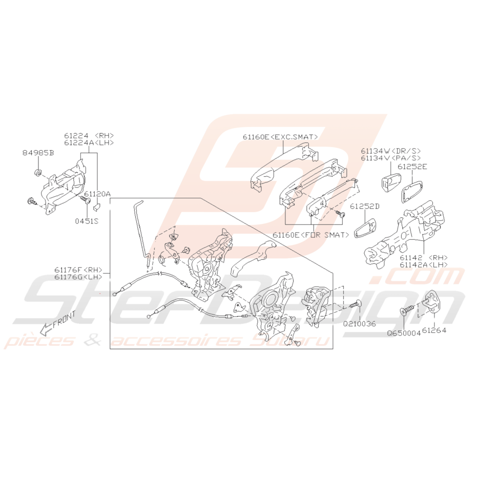 Schéma de l'ensemble des pièces de Pièces de Porte (Attache et Poignée) pour Subaru BRZ de 2013 à 2019.