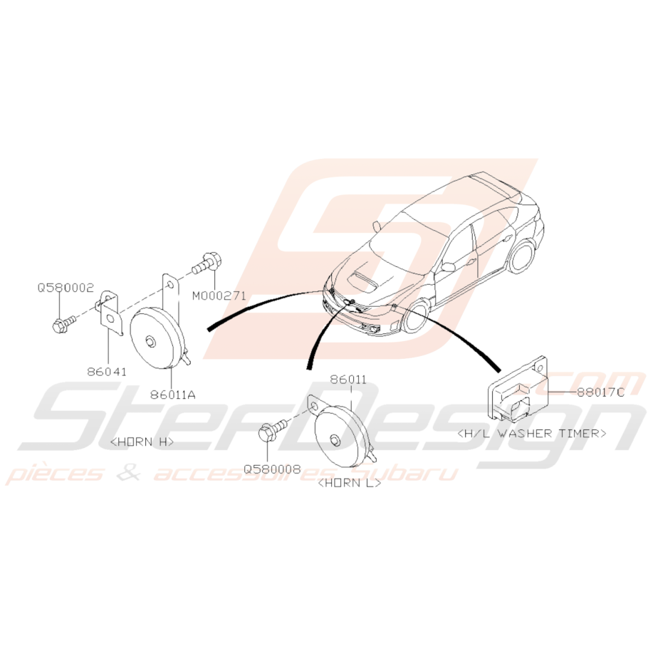 Schéma Pièces Électriques (Klaxon et Minuterie de Lave-Phares) Origine Subaru WRX STI 08-14