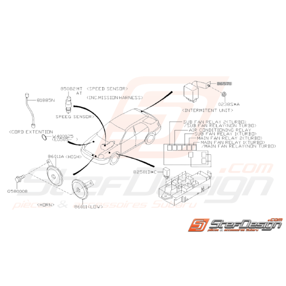Schéma Pièces Electriques Corps Origine Subaru WRX STI 2001 - 2005