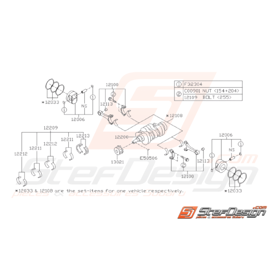 Schéma Pistons et Vilebrequins Origine Subaru WRX STI 2008 - 2014