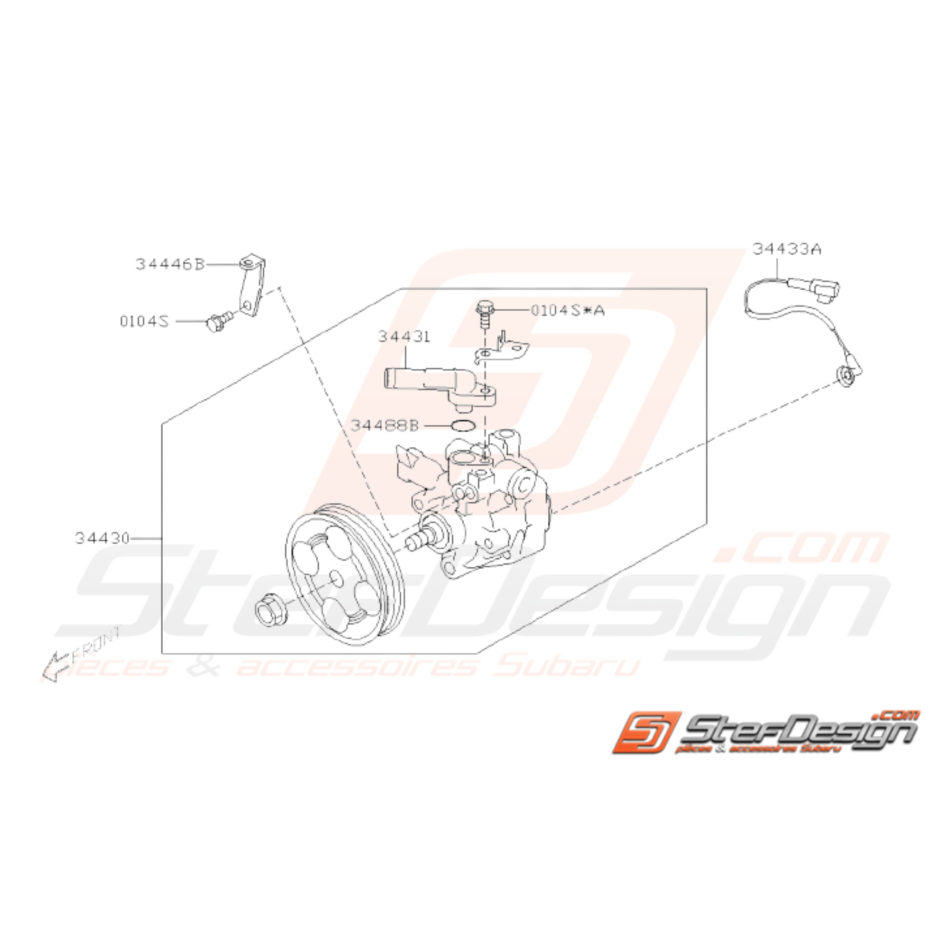 Schéma de l'ensemble des pièces de Pompe à Huile de Direction Assistée pour Subaru WRX STI de 2008 à 2014.