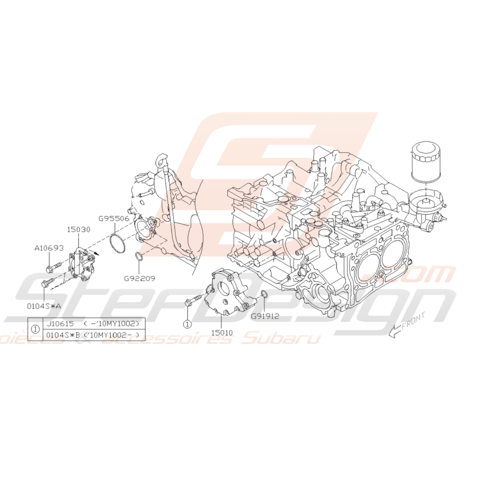 Schéma Pompe et Filtre à Huile Origine Subaru FORESTER WRX Diesel 2008 - 2012