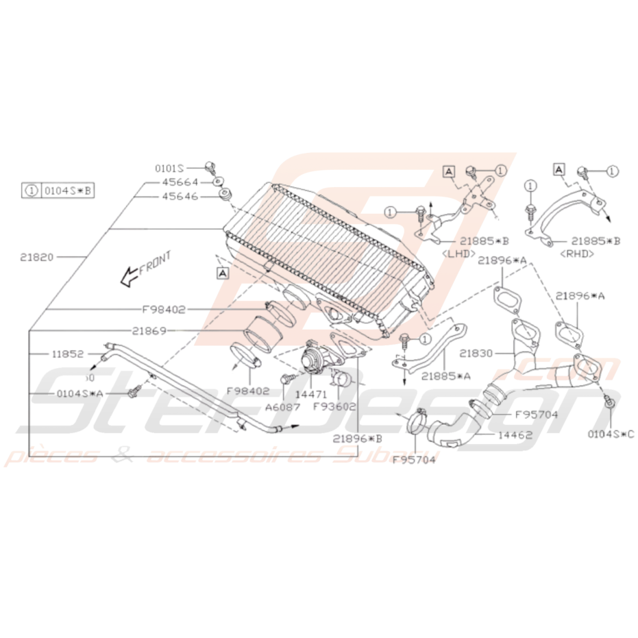 Schéma de l'ensemble des pièces d'Echangeur Intermédiaire pour Subaru STI de 2015 à 2019.
