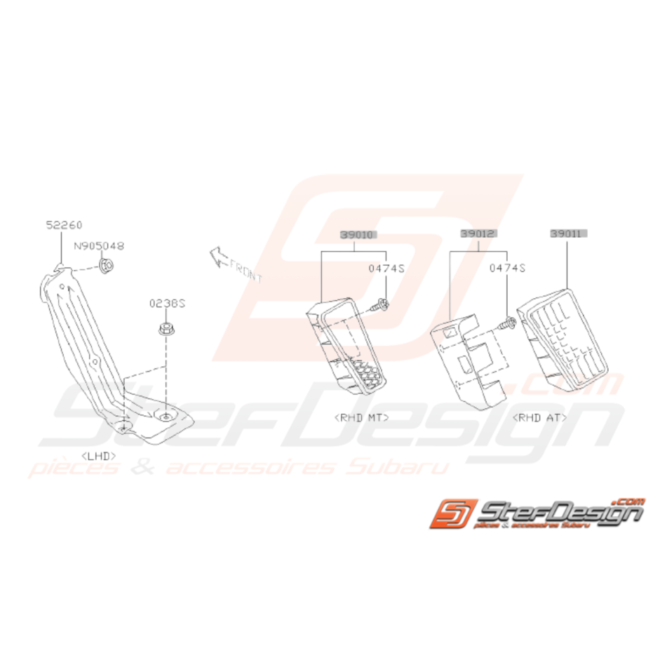 Schéma de l'ensemble des pièces de Repose-Pied pour Subaru WRX STI de 2001 à 2007.