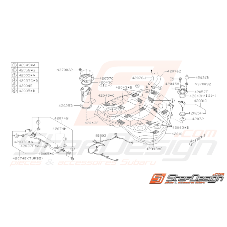 Schéma de l'ensemble des pièces de Réservoir de Carburant pour Subaru STI de 2008 à 2014.