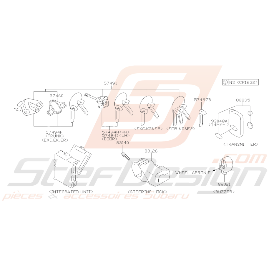 Schéma de l'ensemble des pièces de Serrures et Clés pour Subaru BRZ de 2013 à 2019.