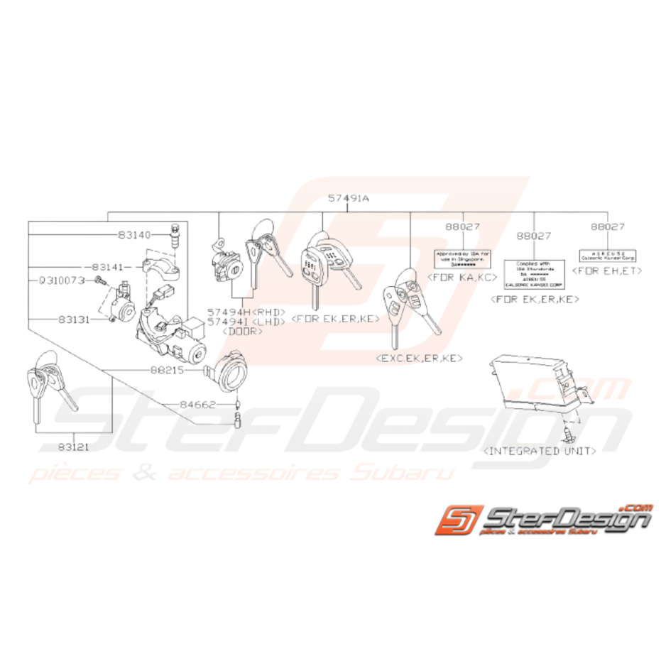 Schéma de l'ensemble des pièces de Serrures et Clés pour Subaru WRX STI de 2008 à 2014.