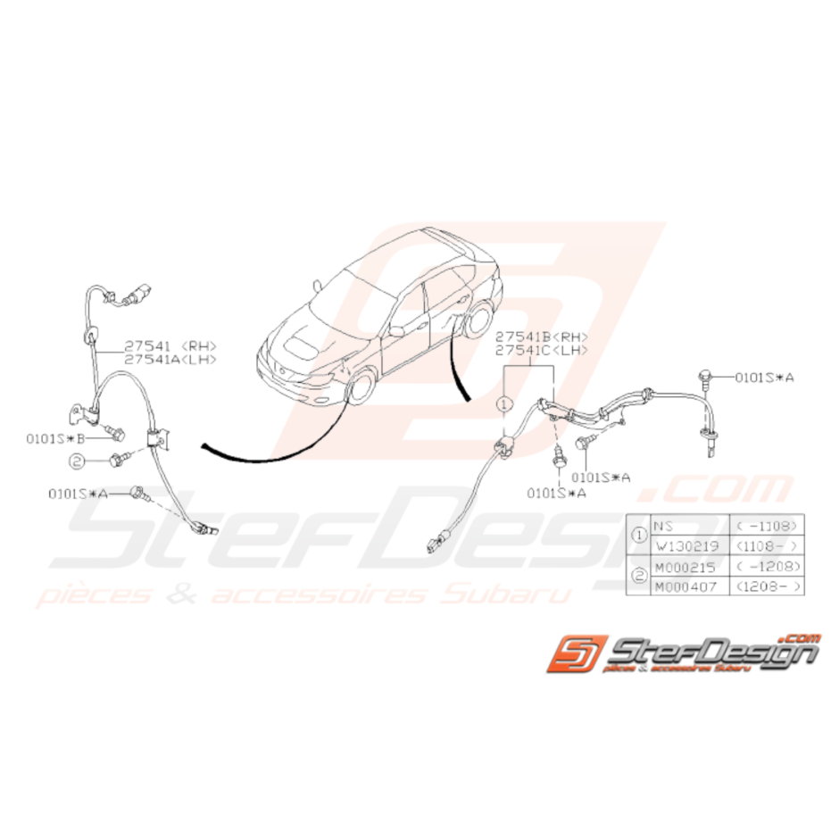 La pièce 1 (NS / W130219) n'est pas disponible pour WRX et de 2008 à Juillet 2011 pour STI.