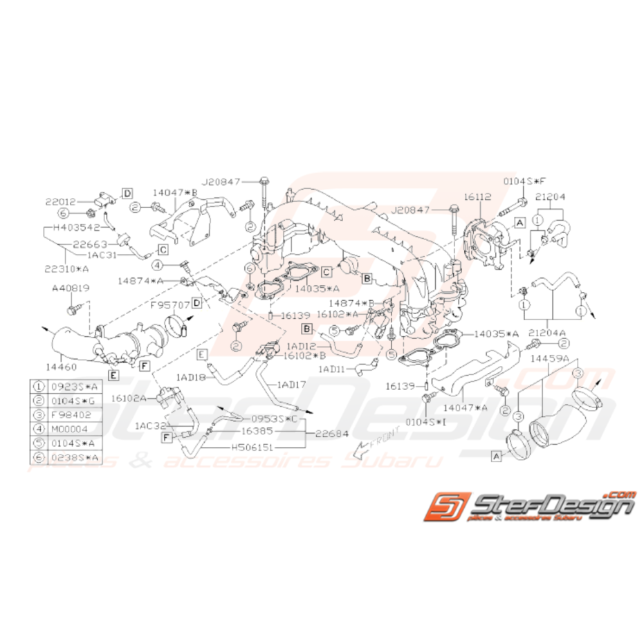 Schéma de l'ensemble des pièces de Système Collecteur d'Admission pour Subaru WRX de 2008 à 2010.