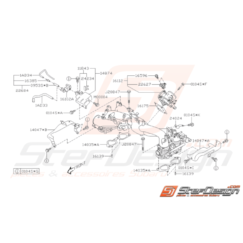 Schéma de l'ensemble des pièces de Système Collecteur d'Admission pour Subaru STI de 2008 à 2014.