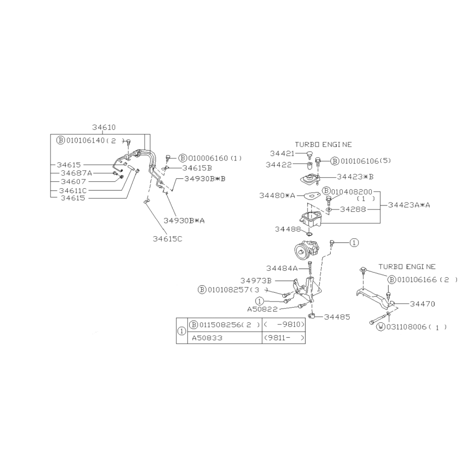 Schéma Système de Direction Assistée Origine Subaru Forester Turbo 97-08/00