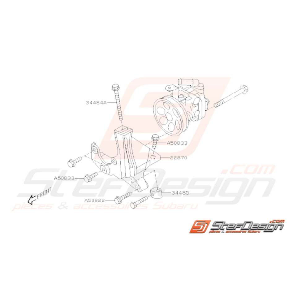 Schéma de l'ensemble des pièces de Système Direction Assistée pour Subaru WRX STI de 2008 à 2014.