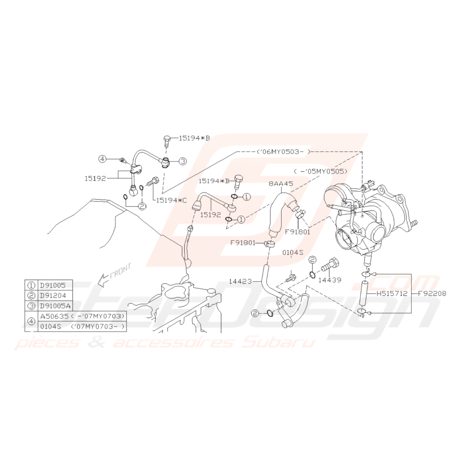 Schéma de l'ensemble des pièces Turbo pour Subaru FORESTER Turbo de 2005 à 2007