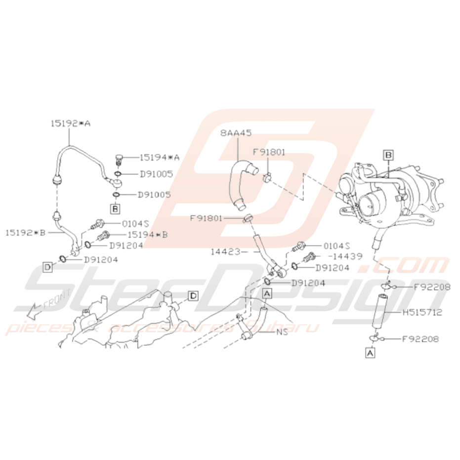 Schéma de l'ensemble des pièces de Turbo pour Subaru STI de 2015 à 2019.