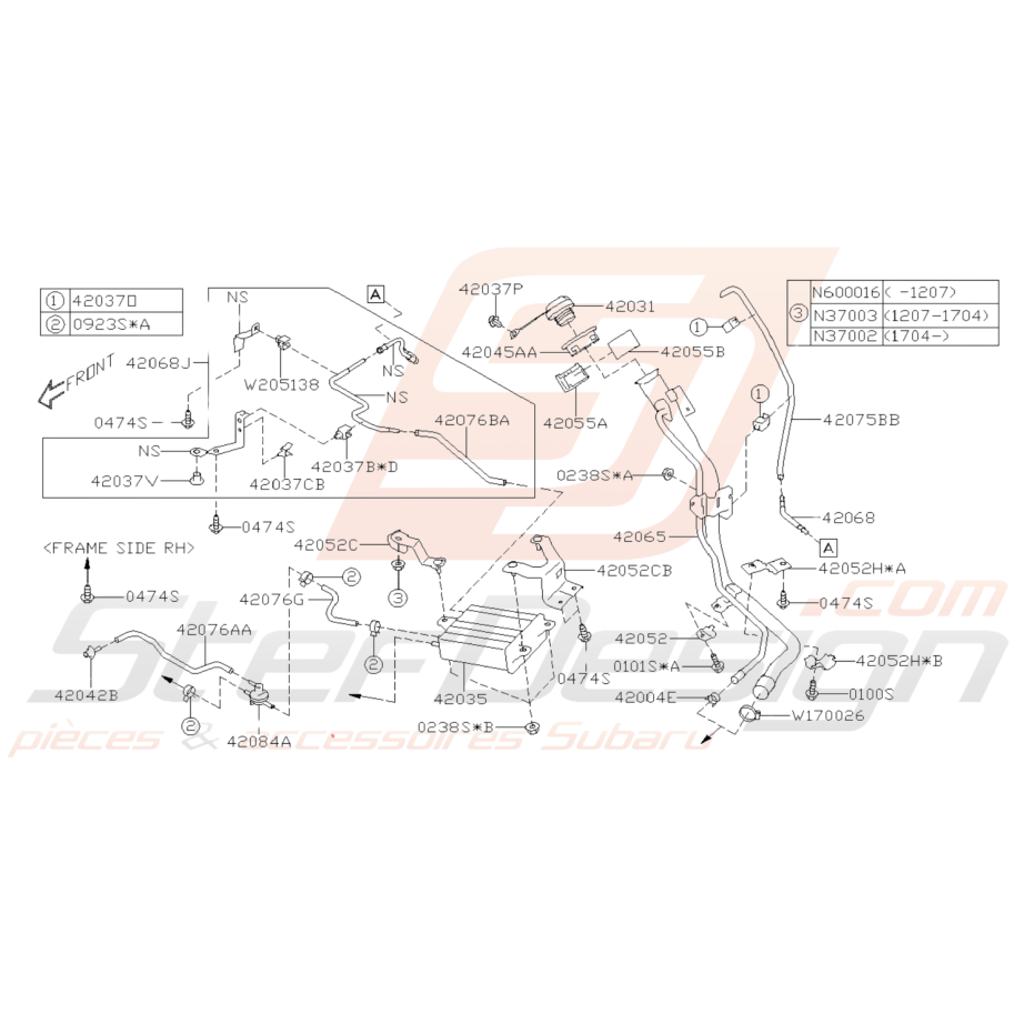 Les pièces 42068J, 42076AA, 42084A, 42052C et 42075BB ne sont pas disponibles pour ces véhicules.