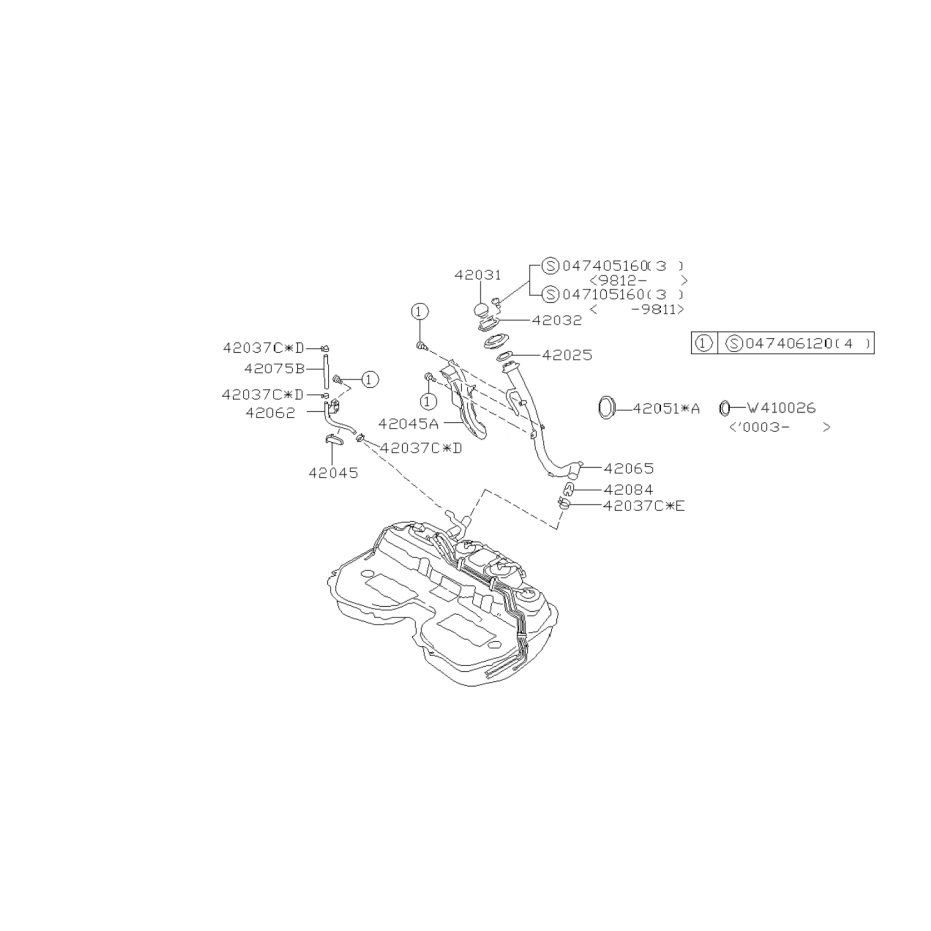 Schéma Tuyau Remplissage de Carburant Origine Subaru Forester Turbo 97-08/00