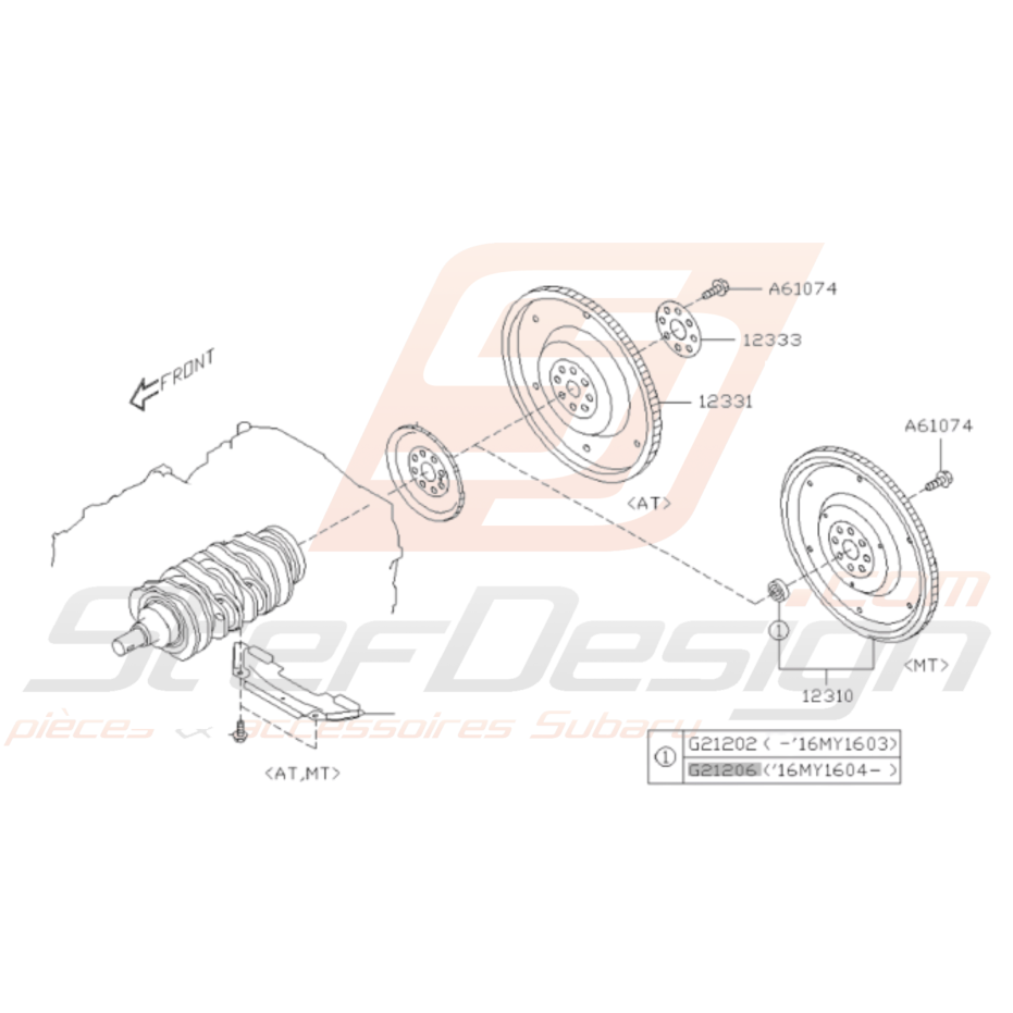 Schéma de l'ensemble des pièces de volant moteur pour Subaru BRZ de 2013 à 2019.