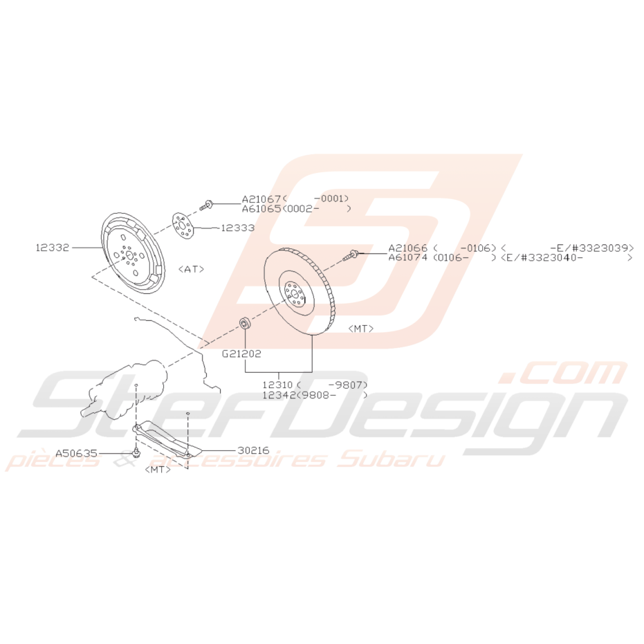 Schéma de l'ensemble des pièces de Volant Moteur pour Subaru FORESTER de 1997 à 2002.