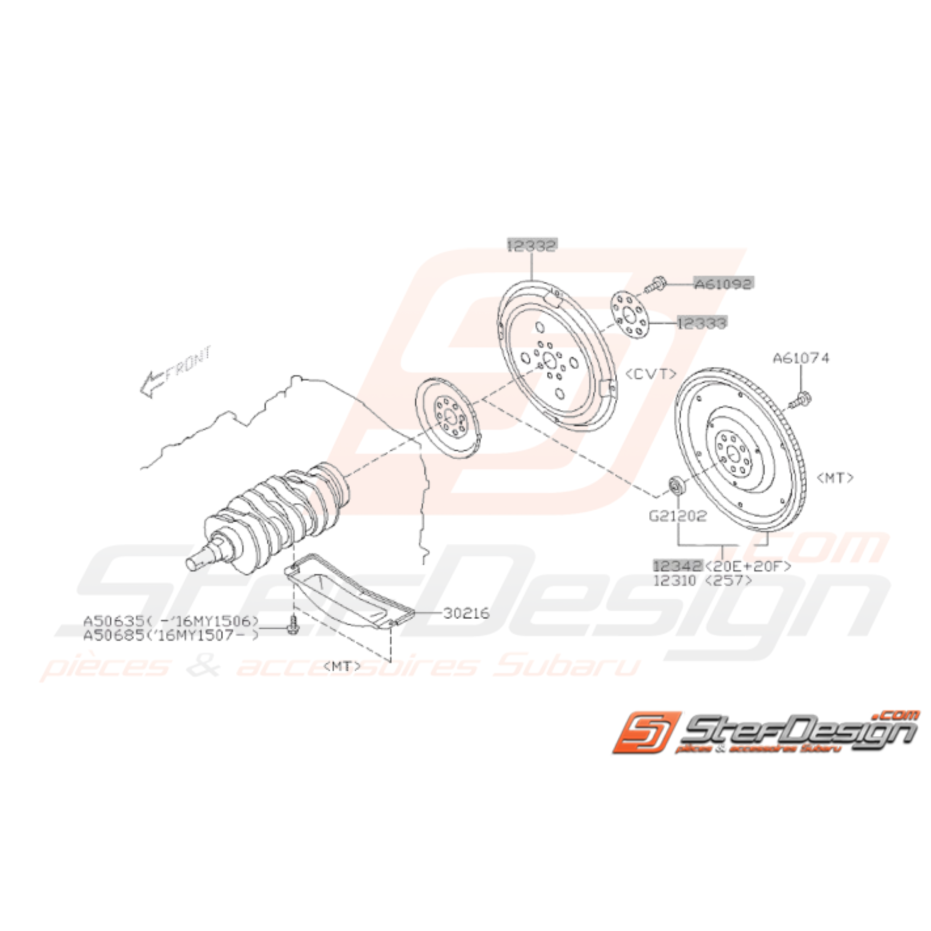 Schéma de l'ensemble des pièces de Volant Moteur pour Subaru STI de 2015 à 2019.