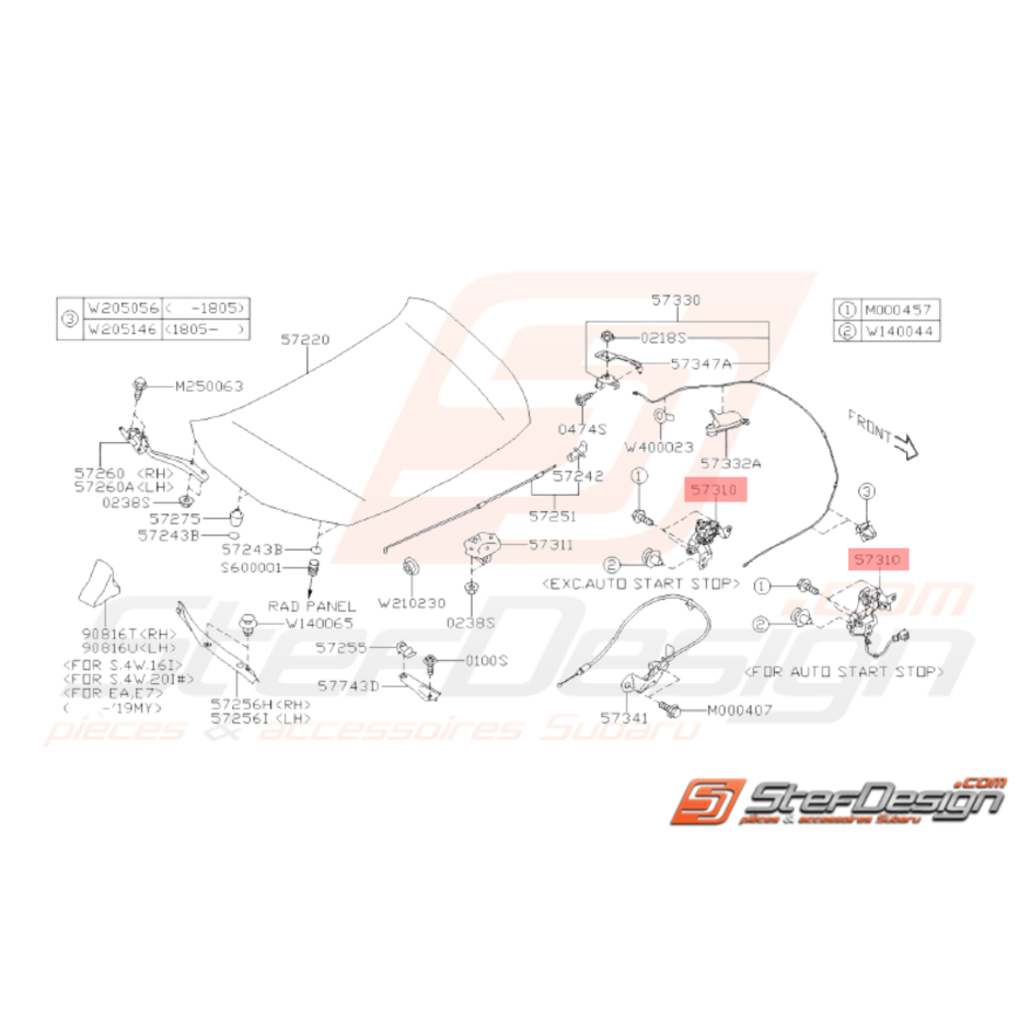Serrure de Capot pour Subaru Impreza de 2018 (1.6L).