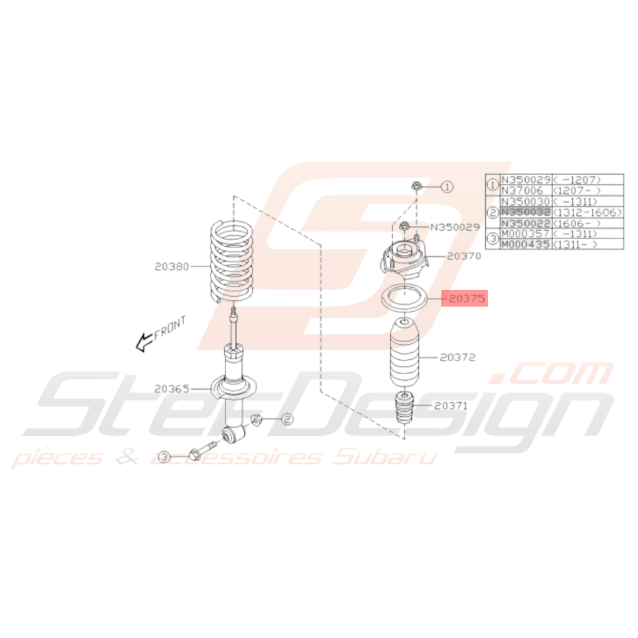 Siège caoutchouc amortisseur arrière Subaru WRX 08-10 STI 08-14 BRZ 13-19