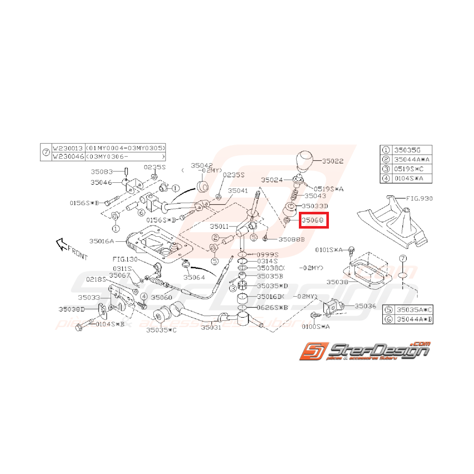 Siège de ressort boite de levier de vitesse Origine Subaru STI 01-14
