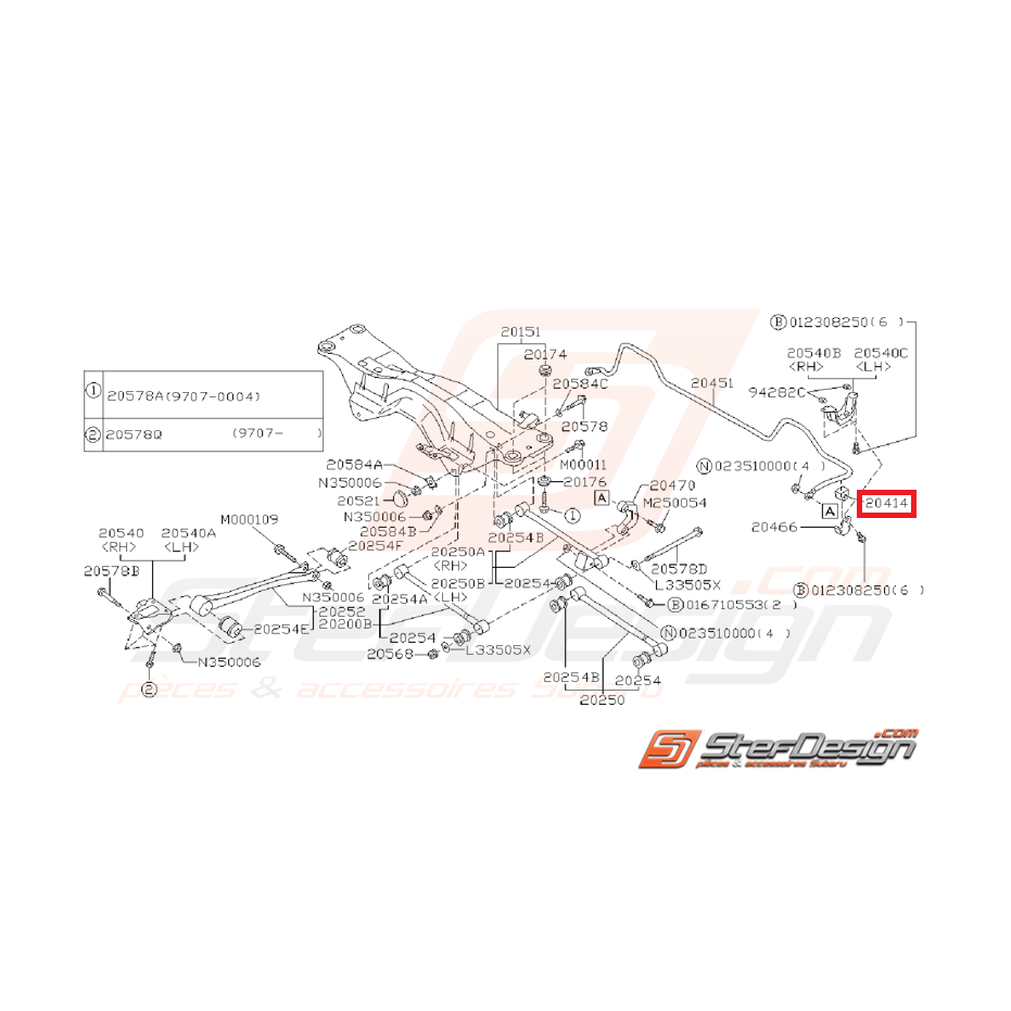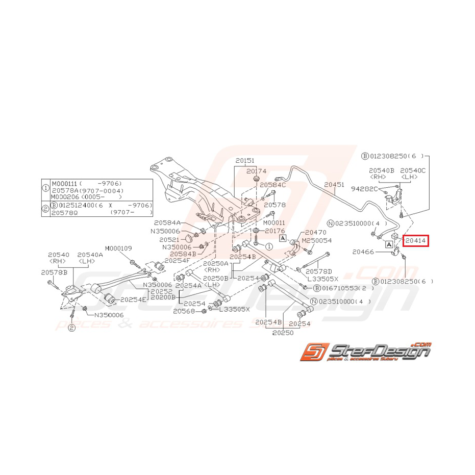 -silent bloc de barre stabilistarice arrière ORIGINE SUBARU pour GT de 1996 à 2000, WRX et STI de 2001 à 2002.