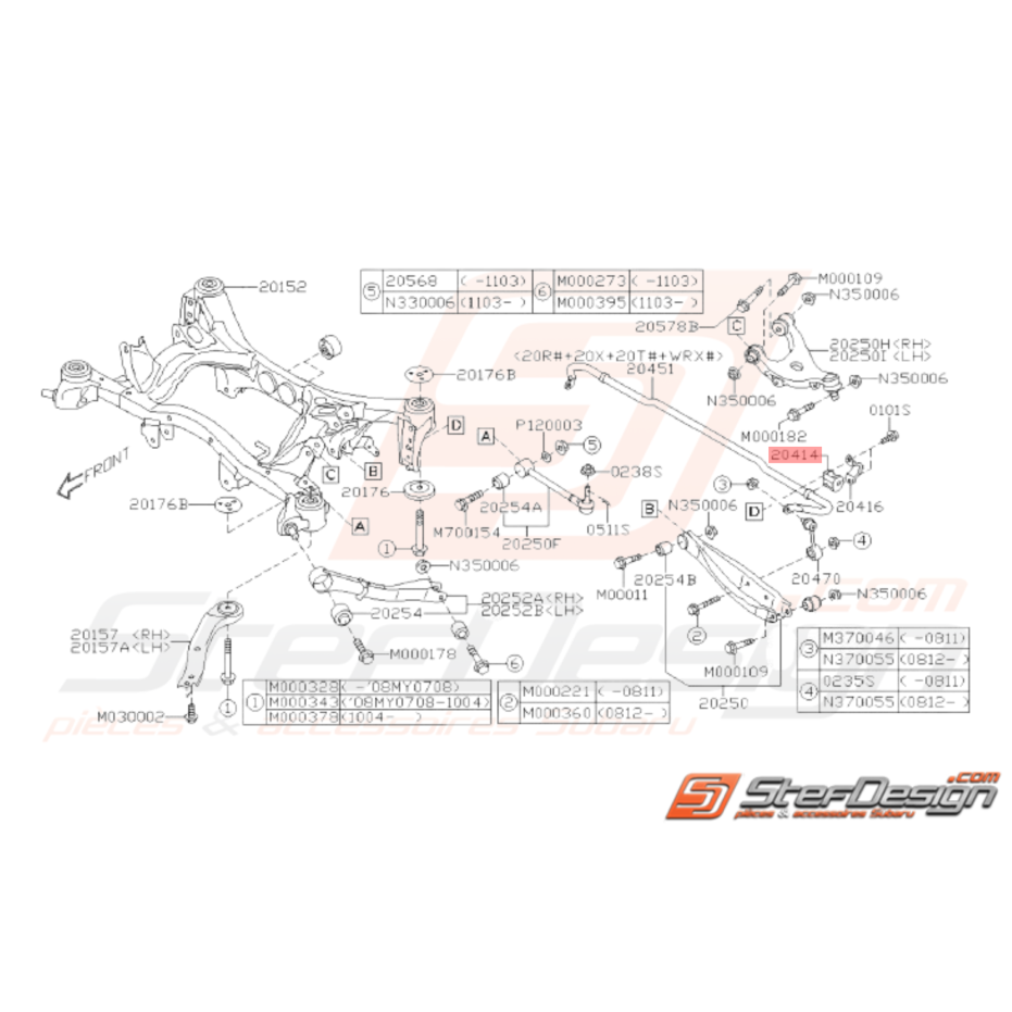 Silent bloc de barre stabilisatrice arrière origine Subaru WRX pour l'année 2008 à 2011.