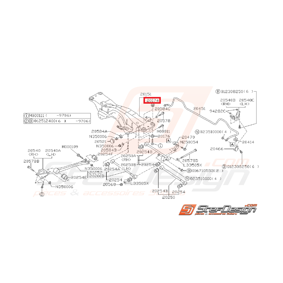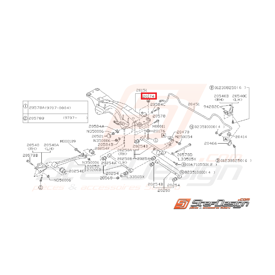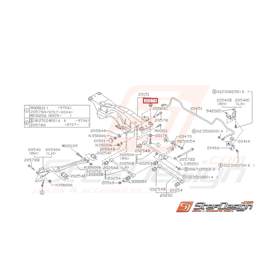 -silent bloc supérieur de berceau arrière pour impreza GT de 1993 à 2000