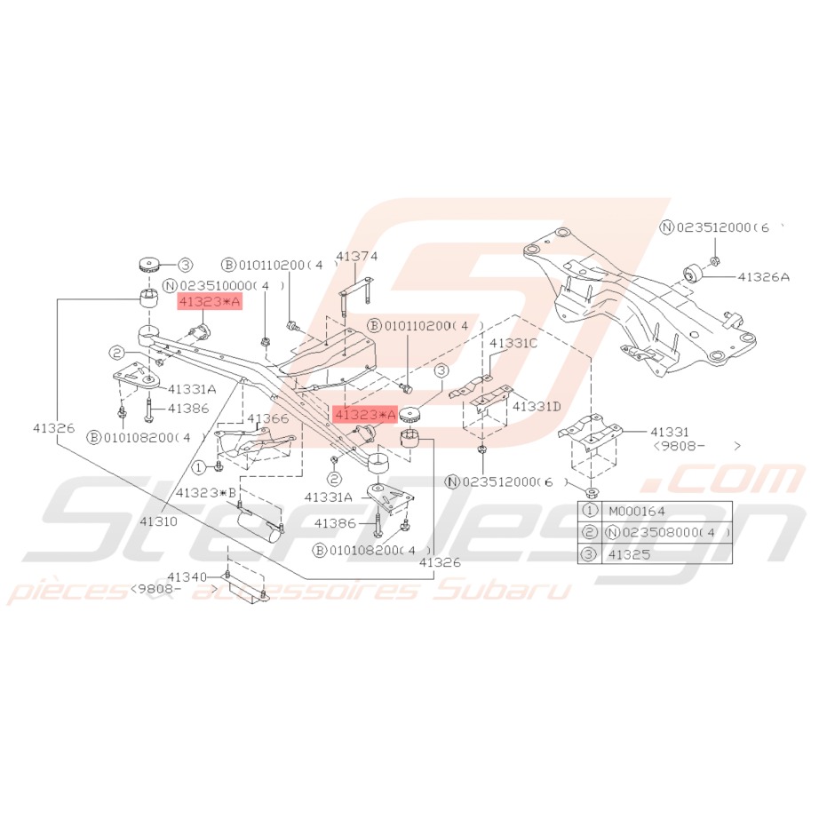 Silent bloc support différentiel arrière GT 93-00 WRX/STI 01-07 FORESTER 97-02