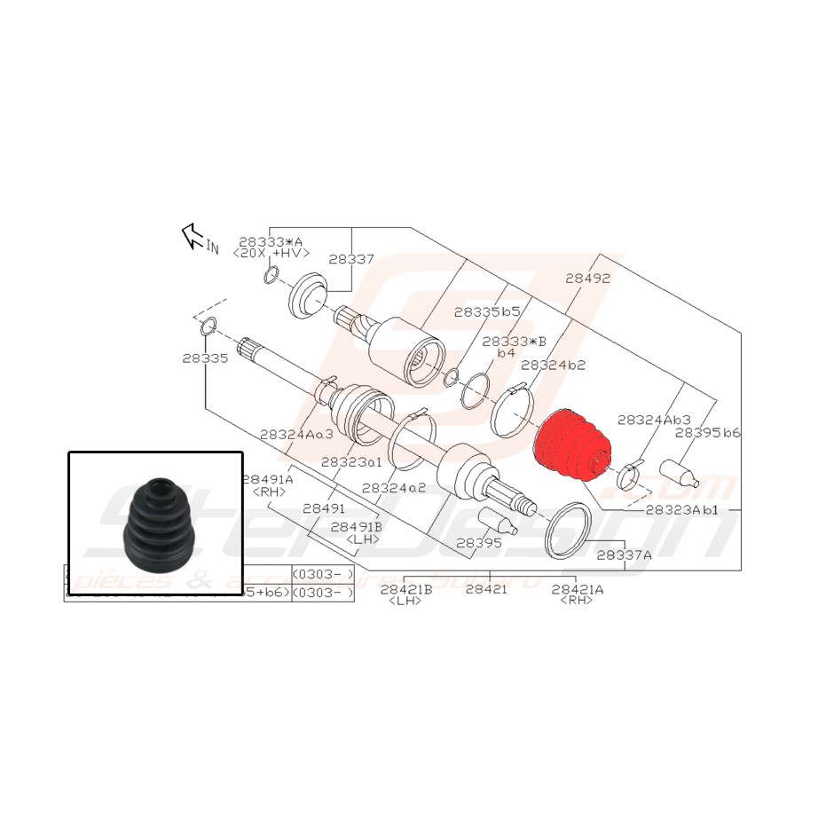 Soufflet de cardan arrière pour Subaru forester SG5 EJ204 2007