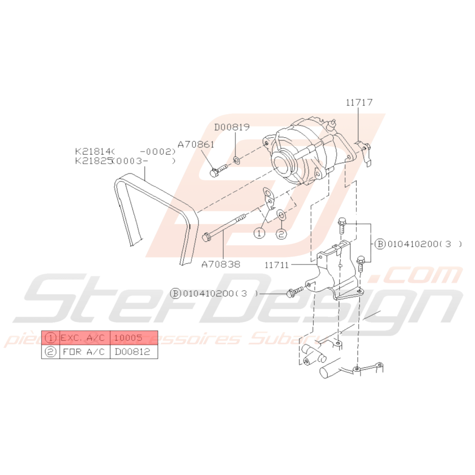 Support avant alternateur Origine Subaru GT 02/97-00 WRX 01-03 STI 01-06/04 FORESTER 97-02