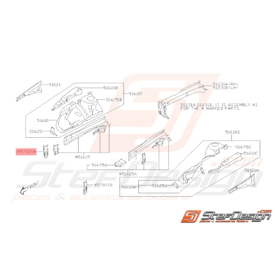 Support avant droit carrosserie pour SUBARU WRX STI de 2008 à 2014.