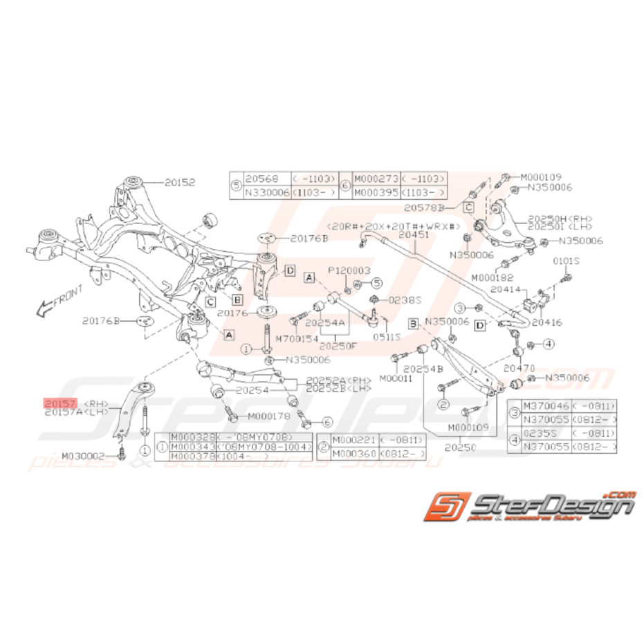 -Support châssis train arrière pour SUBARU WRX et STI de 2008 à 2014.