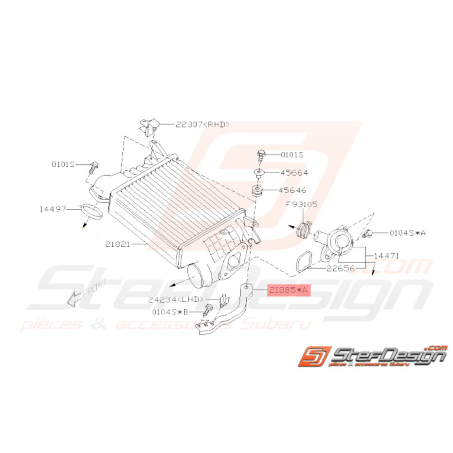 Support d'intermédiaire pour SUBARU WRX de 2008 à 2010.