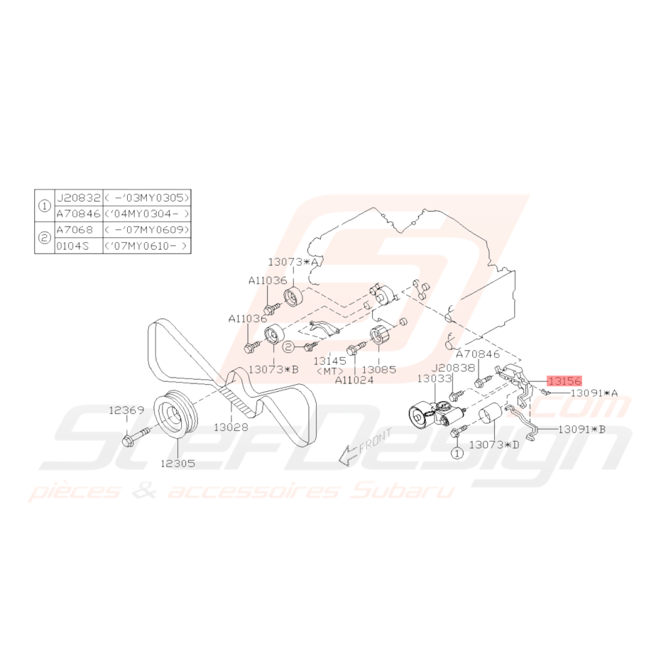 Support de galet tendeur origine Subaru GT 99-00 WRX/STI 01-07 Forester Turbo 97-02/05-07
