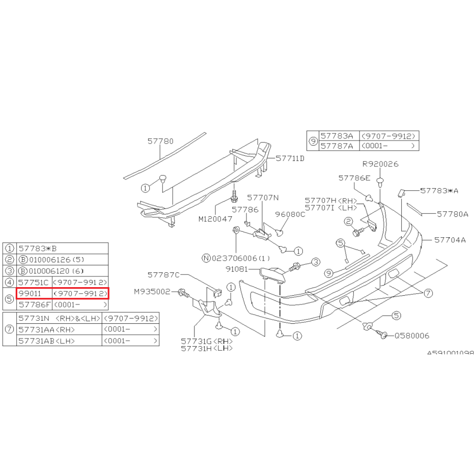 Support de Pare Choc Arrière Origine Subaru Forester Turbo 97-99