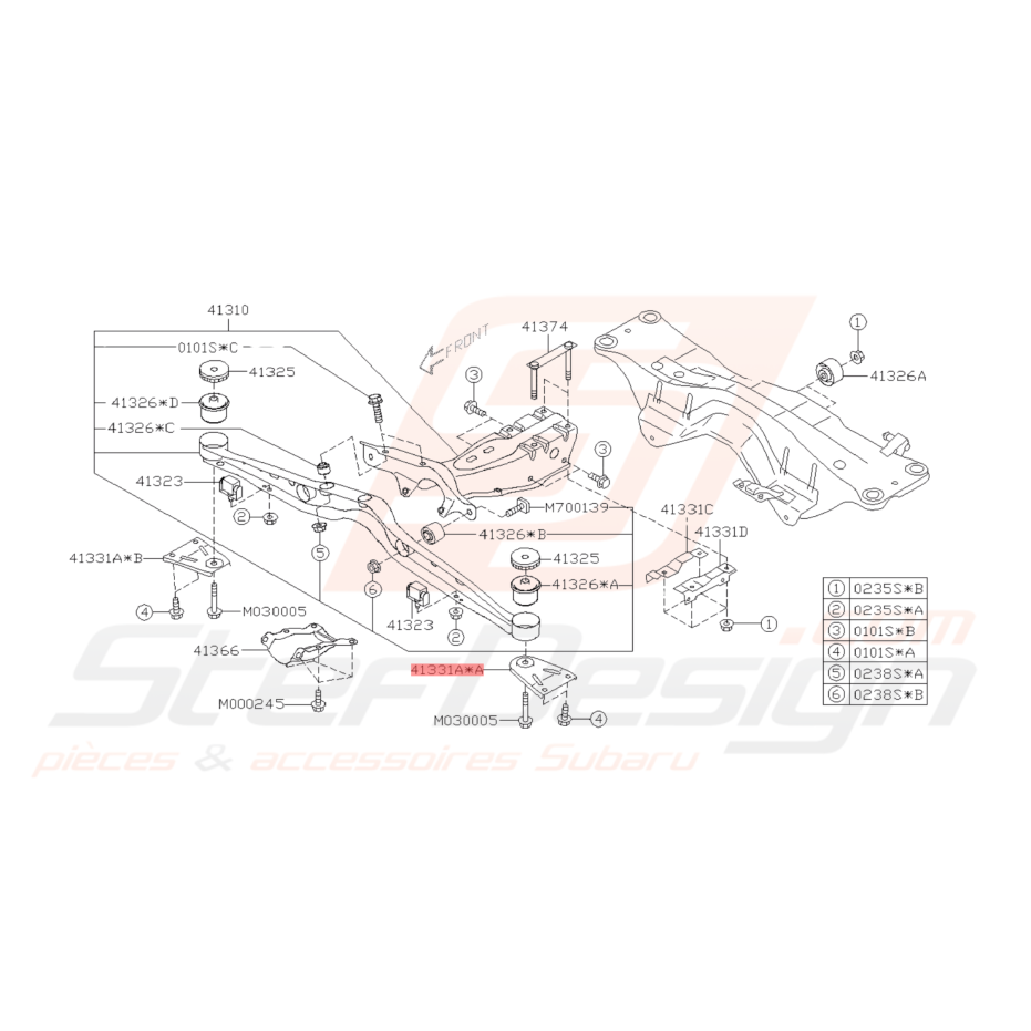 Support de traverse de différentiel arrière Subaru GT 93 -00 WRX / STI 01-07 FORESTER 97-02/05-07
